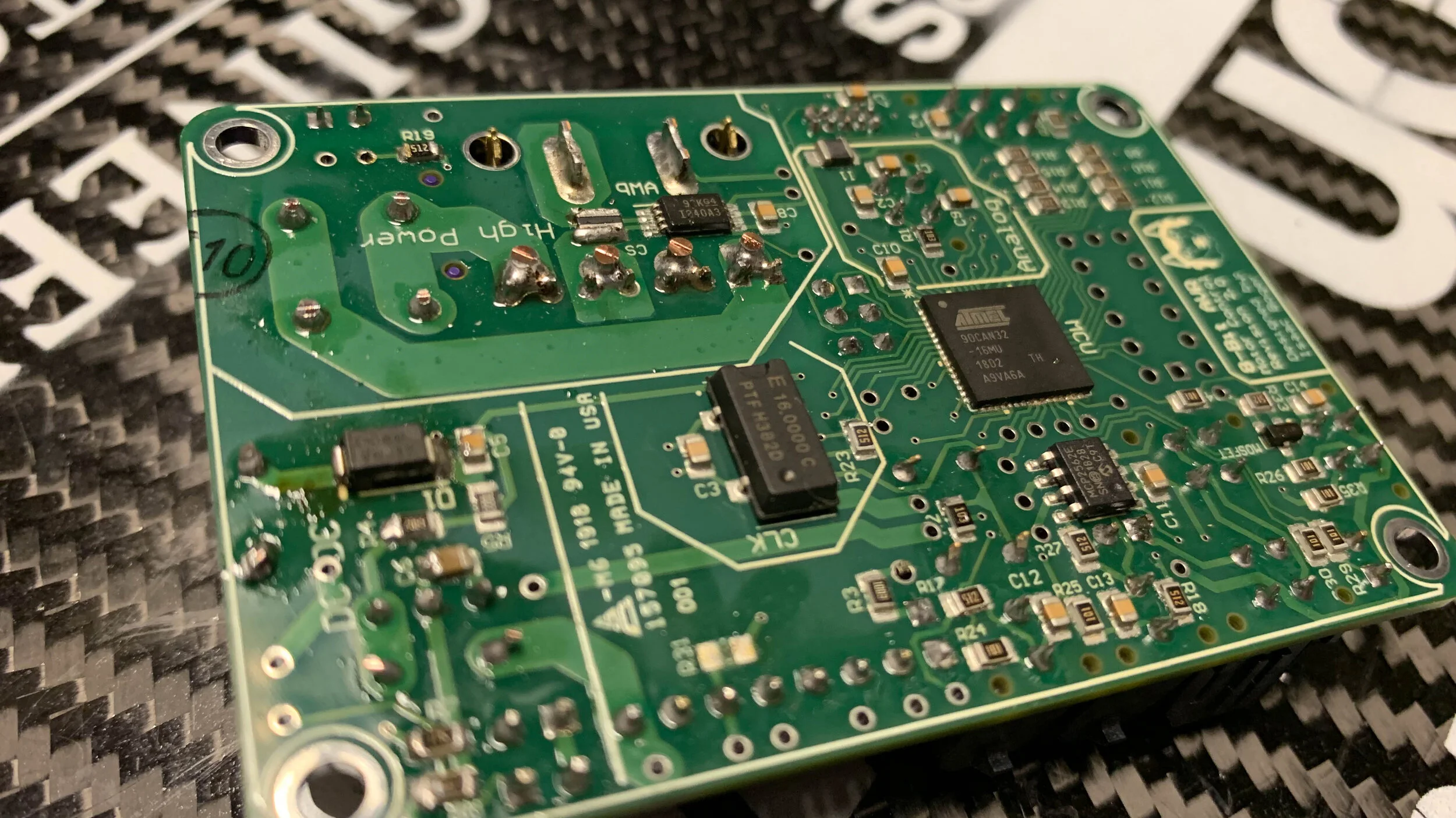 (daughterboard seen in upper right is produced by Pololu Corporation)